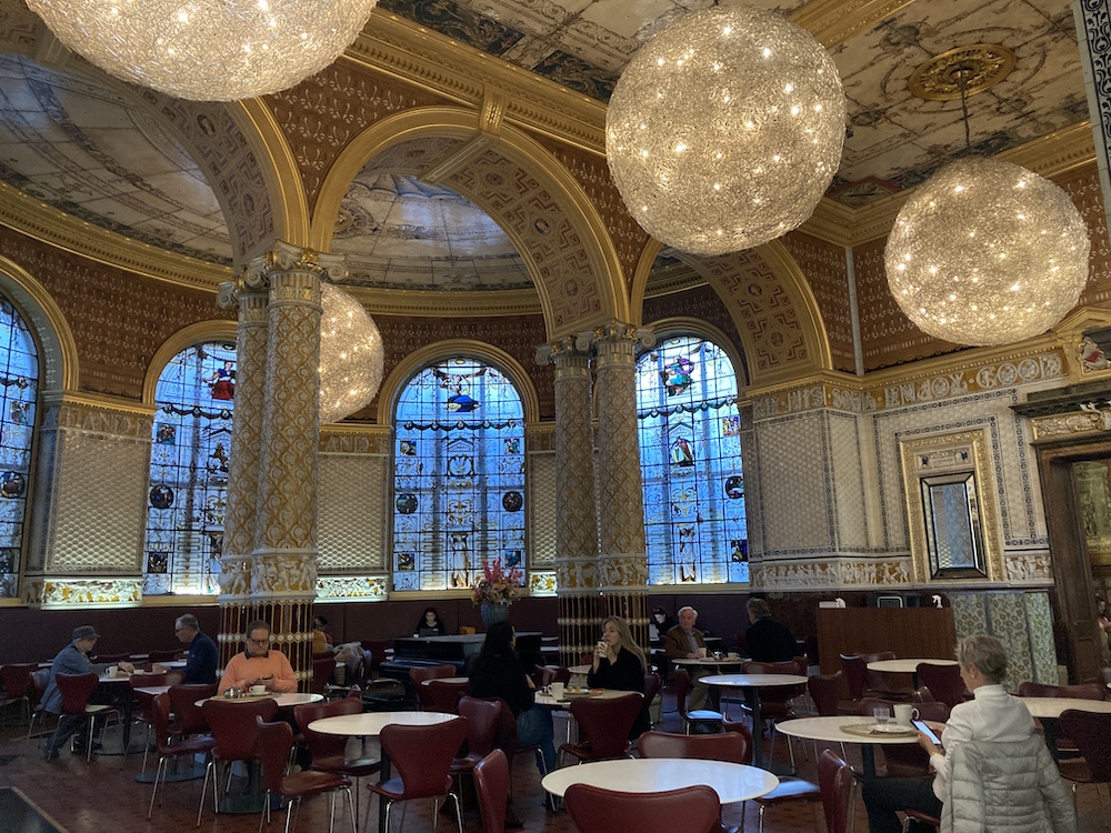 まずはカフェへ。ポットの紅茶3.50ポンドとキャロットケーキ6.50ポンド+サービス税1.25ポンド。何かの間違えで紅茶が5杯分も入っていて飲みきれませんでした。スタッフに聞いたら通常は2杯分らしい。得したんだけど、帰りのトイレが心配になりました。