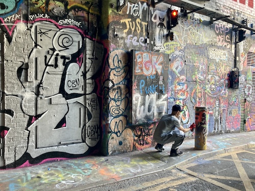 Waterloo駅近くのらくがきOKエリア。みんなが競い合って所狭しと描かれています。